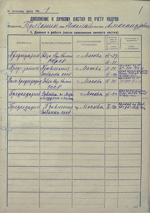 Личное дело Булганина Николая Александровича