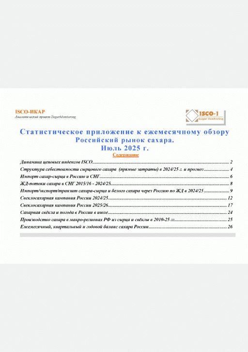 Российский рынок сахара, 2025, N Прил. к N 7