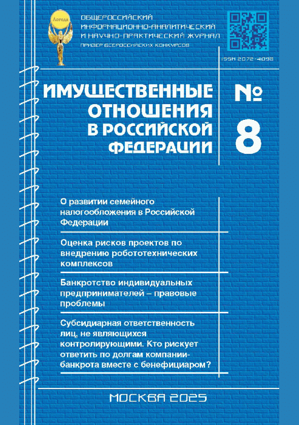 Имущественные отношения в Российской Федерации. — Москва : Московский институт экономики, политики и права , 2025, N 8. — 2025.