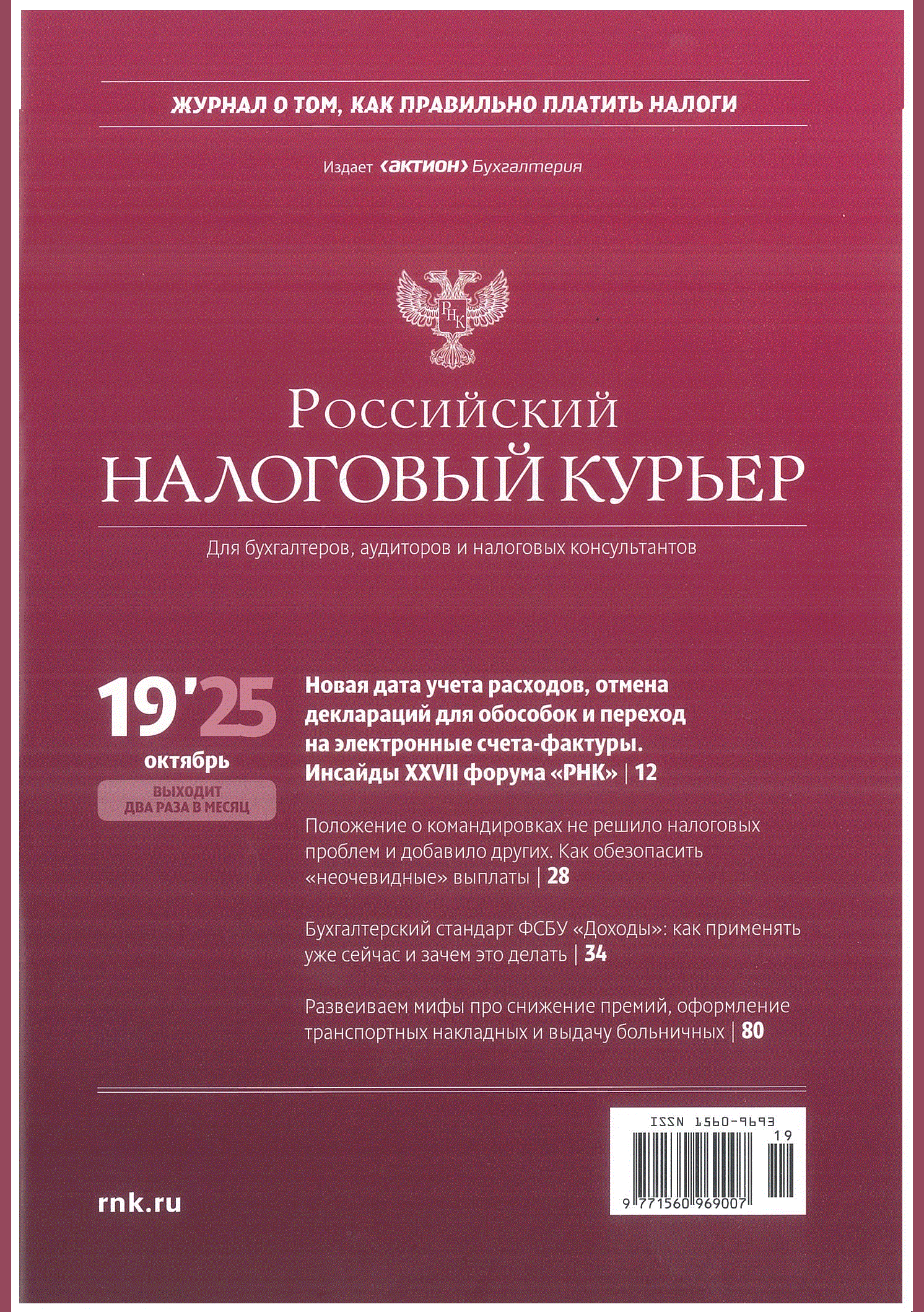 Российский налоговый курьер. — Москва : Актион-МЦФЭР , 2025, N 19. — 2025.
