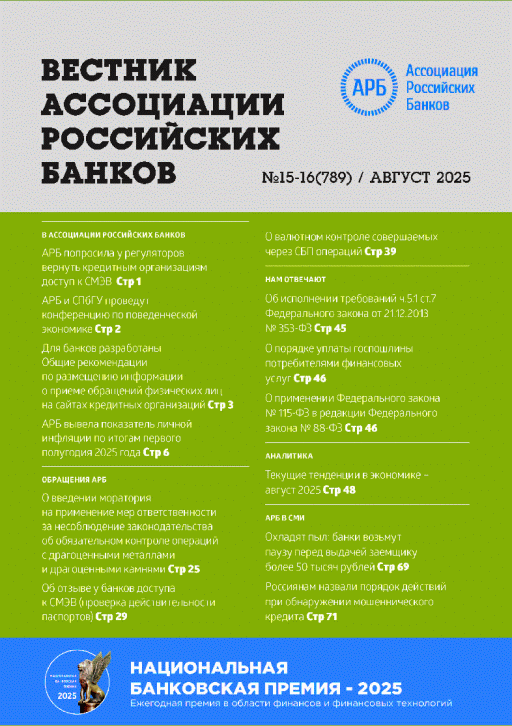 Вестник АРБ. — Москва : Ассоциация российских банков , 2025, N 15/16. — 2025.