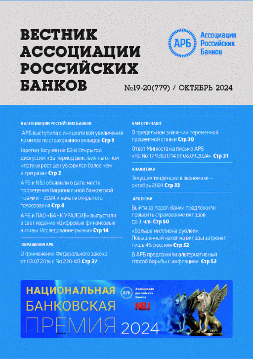 Вестник АРБ. — Москва : Ассоциация российских банков , 2024, N 19/20. — 2024.