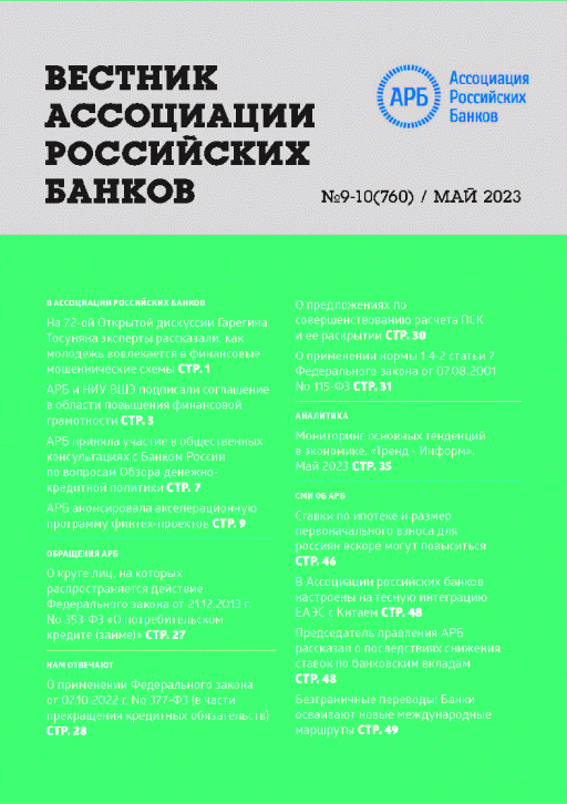 Вестник АРБ. — Москва : Ассоциация российских банков , 2023, N 9/10. — 2023.