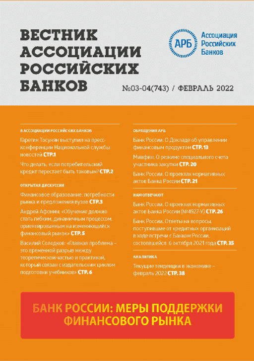 Вестник АРБ. — Москва : Ассоциация российских банков , 2022, N 3/4. — 2022.