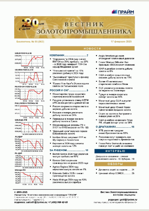 Вестник золотопромышленника : бюллетень. — Москва : ПРАЙМ , 2025, N 5. — 2025.