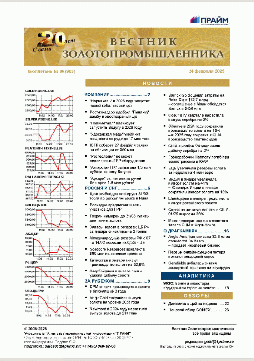 Вестник золотопромышленника : бюллетень. — Москва : ПРАЙМ , 2025, N 6. — 2025.