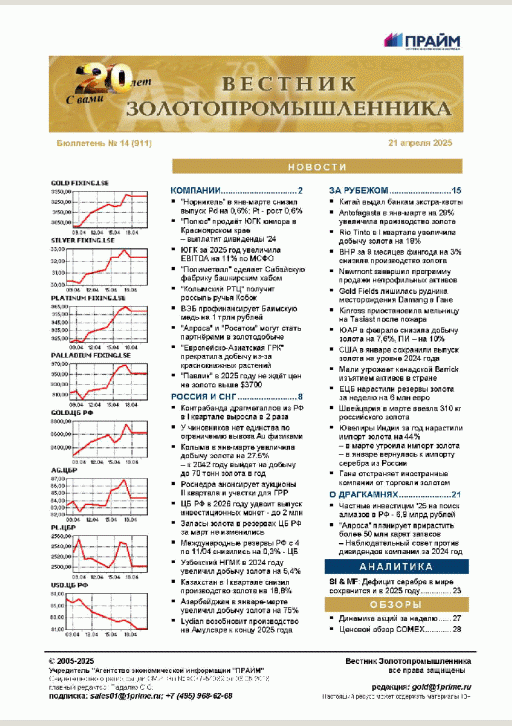 Вестник золотопромышленника : бюллетень. — Москва : ПРАЙМ , 2025, N 14. — 2025.