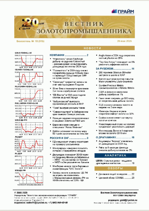 Вестник золотопромышленника : бюллетень. — Москва : ПРАЙМ , 2025, N 18. — 2025.