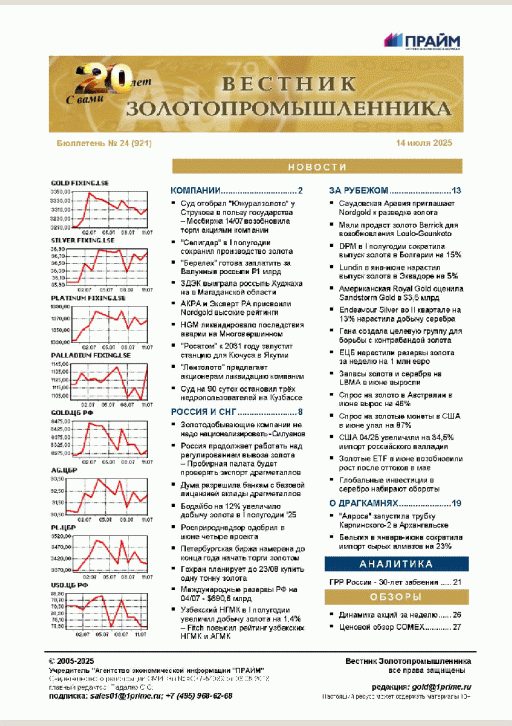 Вестник золотопромышленника : бюллетень. — Москва : ПРАЙМ , 2025, N 24. — 2025.