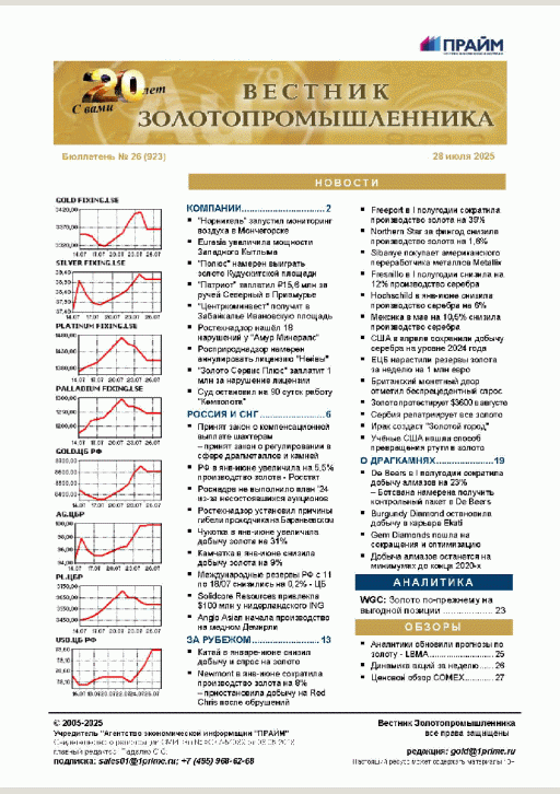 Вестник золотопромышленника : бюллетень. — Москва : ПРАЙМ , 2025, N 26. — 2025.