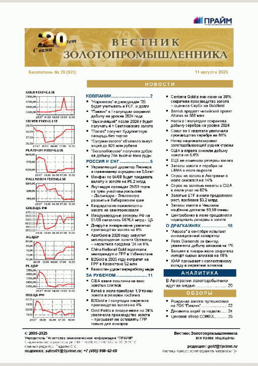 Вестник золотопромышленника : бюллетень. — Москва : ПРАЙМ , 2025, N 28. — 2025.