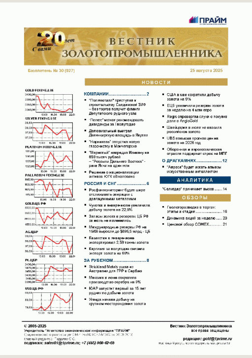 Вестник золотопромышленника : бюллетень. — Москва : ПРАЙМ , 2025, N 30. — 2025.