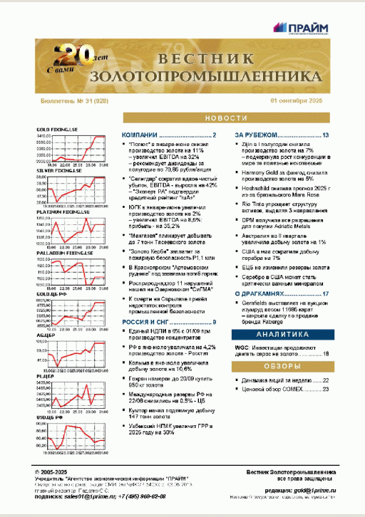 Вестник золотопромышленника : бюллетень. — Москва : ПРАЙМ , 2025, N 31. — 2025.
