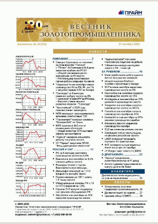 Вестник золотопромышленника : бюллетень. — Москва : ПРАЙМ , 2025, N 39. — 2025.