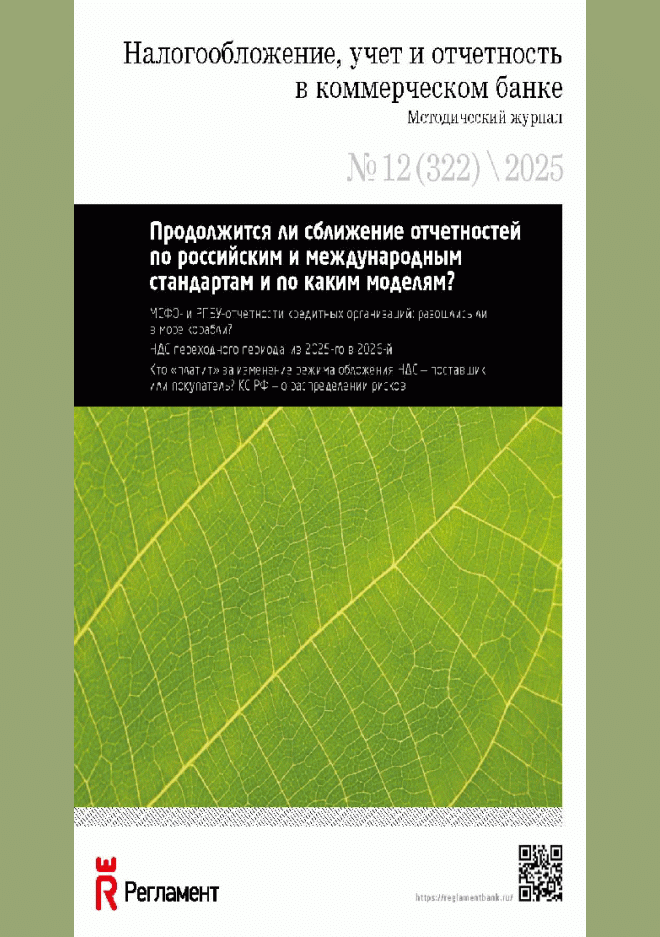 Налогообложение, учет и отчетность в коммерческом банке. — Москва : Регламент , 2025, N 12. — 2025.