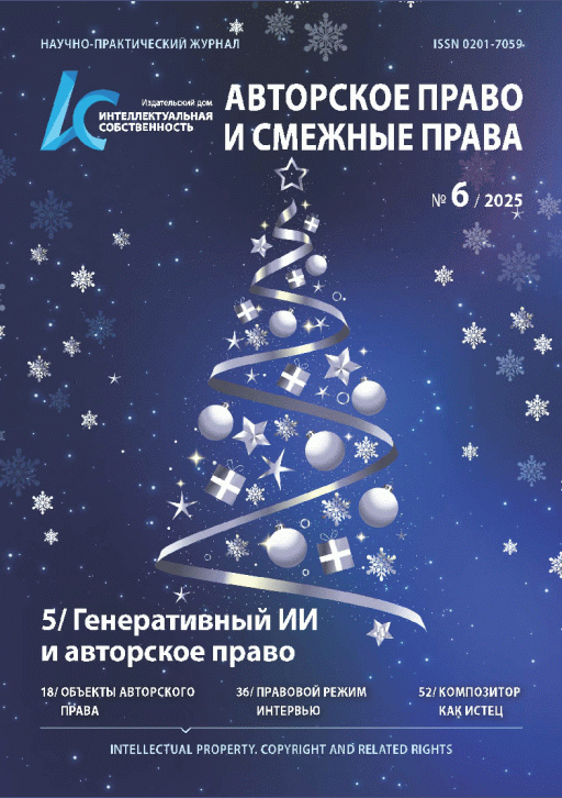 Интеллектуальная собственность : авторское право и смежные права. — Москва : Интеллектуальная собственность , 2025, N 6. — 2025.
