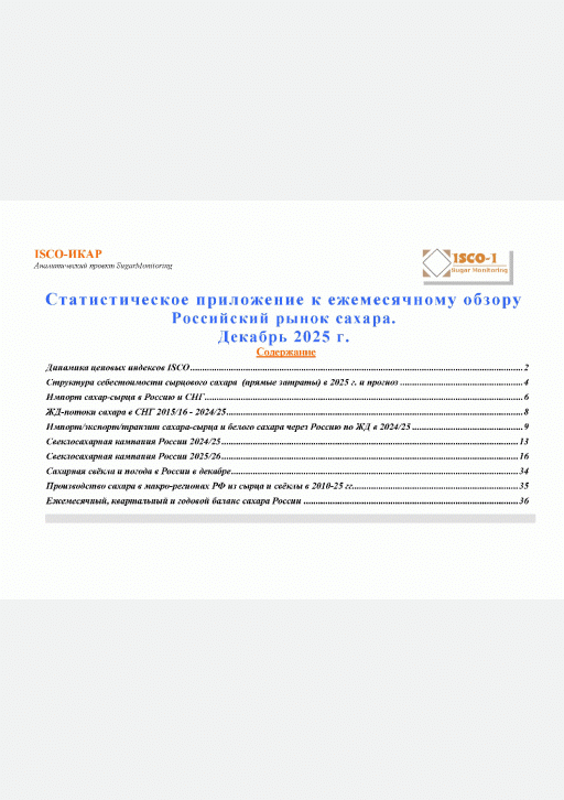 Российский рынок сахара. — Москва : ИКАР , 2025, N Прил. к 12. — 2025.