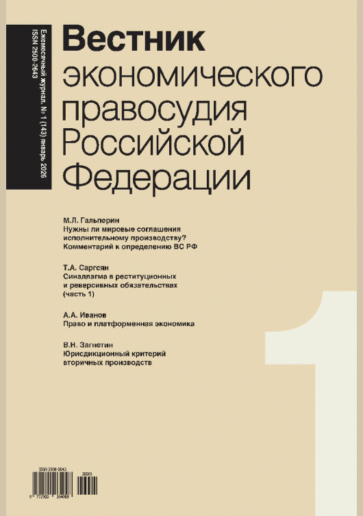 Вестник экономического правосудия Российской Федерации. — Москва : Закон , 2026, N 1. — 2026.