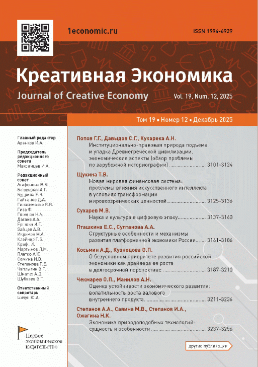Креативная экономика. — Москва : Первое экономическое издательство , 2025, Т.19 N 12. — 2025.