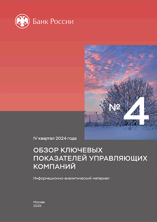 Обзор ключевых показателей управляющих компаний : информационно-аналитический материал / Центральный банк Российской Федерации, Департамент исследований и прогнозирования. — Москва : Банк России , 2024, N 4 кв.. — 2024.
