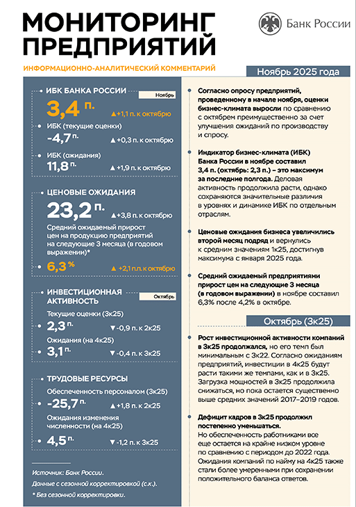 Мониторинг предприятий : информационно-аналитический комментарий / Центральный банк Российской Федерации, Департамент денежно-кредитной политики. — Москва : Банк России , 2025, N нояб.. — 2025.