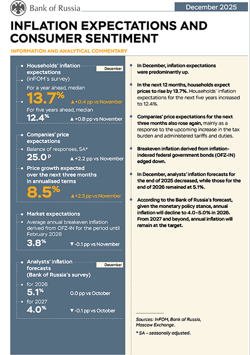 Inflation expectations and consumer sentiment : information and analytical commentary / The Central Bank of the Russian Federation, Monetary Policy Department. — Moscow : Bank of Russia , 2025, N dec.. — 2025.