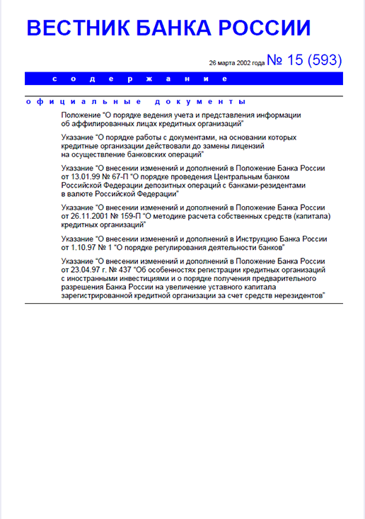 Вестник Банка России / Центральный банк Российской Федерации. — Москва : ПРАЙМ , 2002, N 15. — Москва : ПРАЙМ-ТАСС, 2002.
