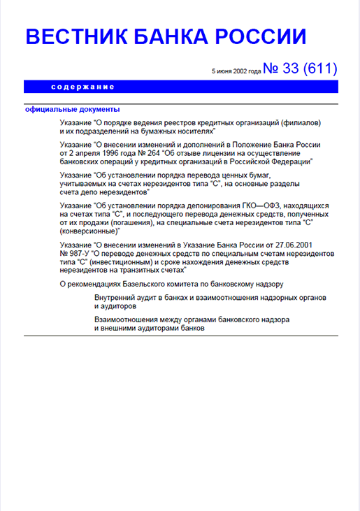 Вестник Банка России / Центральный банк Российской Федерации. — Москва : ПРАЙМ , 2002, N 33. — Москва : ПРАЙМ-ТАСС, 2002.