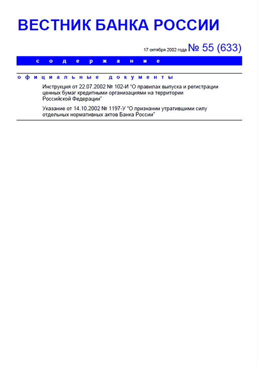 Вестник Банка России / Центральный банк Российской Федерации. — Москва : ПРАЙМ , 2002, N 55. — Москва : ПРАЙМ-ТАСС, 2002.