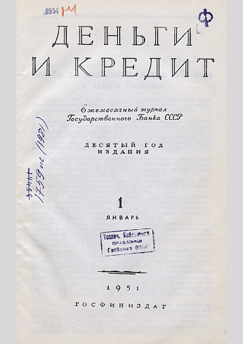 Деньги и кредит / Центральный банк Российской Федерации. — Москва : Банк России , 1951, N 1. — 1951.