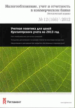 Налогообложение, учет и отчетность в коммерческом банке. — Москва : Регламент , 2012, N 12. — 2012.