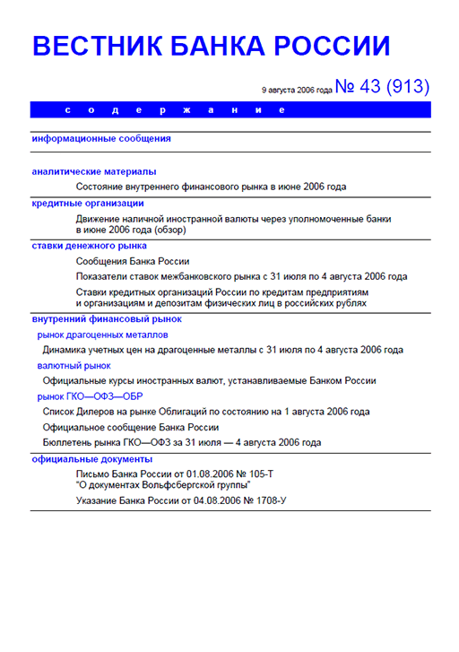 Вестник Банка России, 2006, N 43
