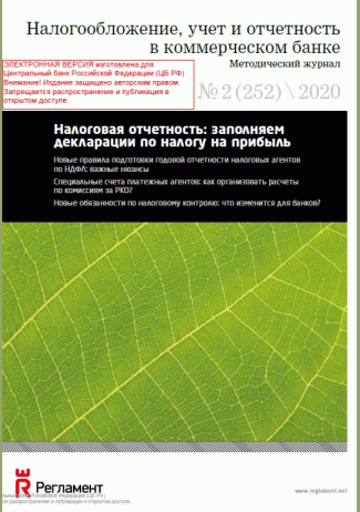 Налогообложение, учет и отчетность в коммерческом банке. — Москва : Регламент , 2020, N 2. — 2020.
