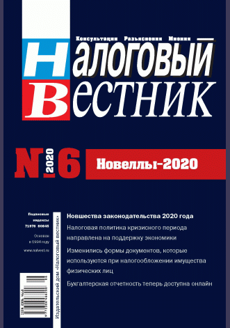 Налоговый вестник. — Москва : Налоговый вестник , 2020, N 6. — 2020.