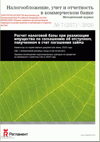 Налогообложение, учет и отчетность в коммерческом банке. — Москва : Регламент , 2020, N 7. — 2020.