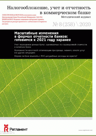 Налогообложение, учет и отчетность в коммерческом банке. — Москва : Регламент , 2020, N 8. — 2020.