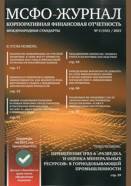 Корпоративная финансовая отчетность. Международные стандарты : методический журнал для специалистов российских компаний и кредитных организаций. — Москва : Методология , 2021, N 5. — 2021.