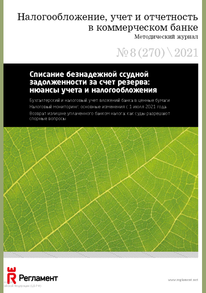 Налогообложение, учет и отчетность в коммерческом банке. — Москва : Регламент , 2021, N 8. — 2021.