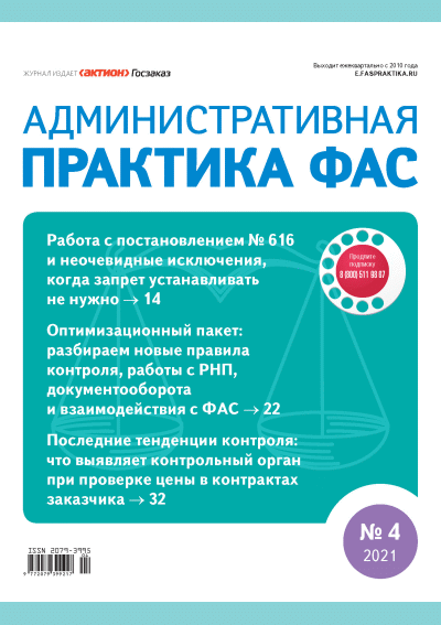 Административная практика ФАС. Приложение к журналу "Госзакупки.ру", 2021, N 4