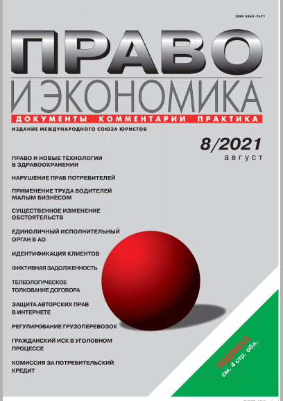 Право и экономика. — Москва : Юстицинформ , 2021, N 8. — 2021.