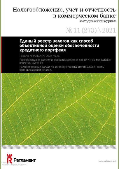 Налогообложение, учет и отчетность в коммерческом банке. — Москва : Регламент , 2021, N 11. — 2021.
