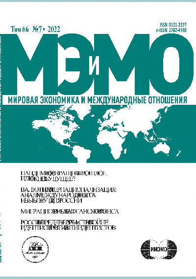 Мировая экономика и международные отношения, 2022, Т.66 N 7