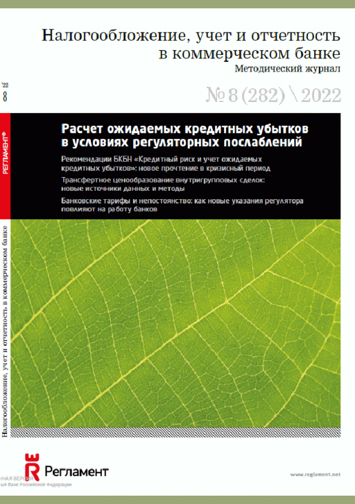 Налогообложение, учет и отчетность в коммерческом банке. — Москва : Регламент , 2022, N 8. — 2022.