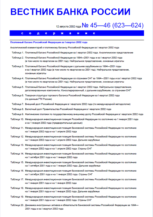Вестник Банка России / Центральный банк Российской Федерации. — Москва : ПРАЙМ , 2002, N 45/46. — Москва : ПРАЙМ-ТАСС, 2002.