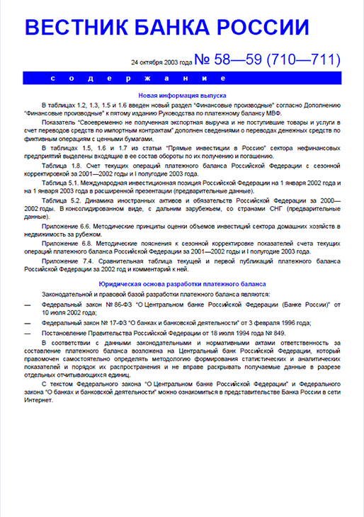 Вестник Банка России / Центральный банк Российской Федерации. — Москва : ПРАЙМ , 2003, N 58/59. — Москва : ПРАЙМ-ТАСС, 2003.