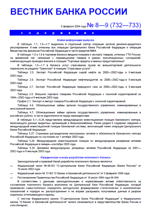 Вестник Банка России / Центральный банк Российской Федерации. — Москва : ПРАЙМ , 2004, N 8/9. — Москва : ПРАЙМ-ТАСС, 2004.