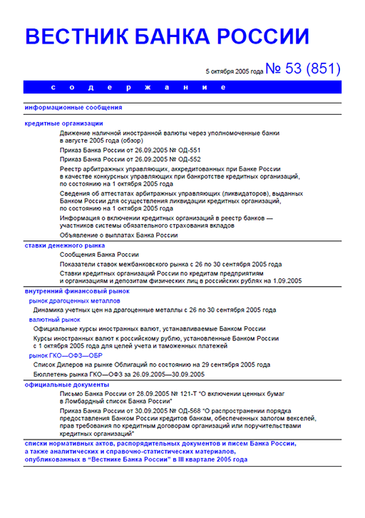 Вестник Банка России / Центральный банк Российской Федерации. — Москва : ПРАЙМ , 2005, N 53. — Москва : ПРАЙМ-ТАСС, 2005.
