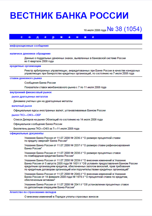 Вестник Банка России / Центральный банк Российской Федерации. — Москва : ПРАЙМ , 2008, N 38. — Москва : ПРАЙМ-ТАСС, 2008.