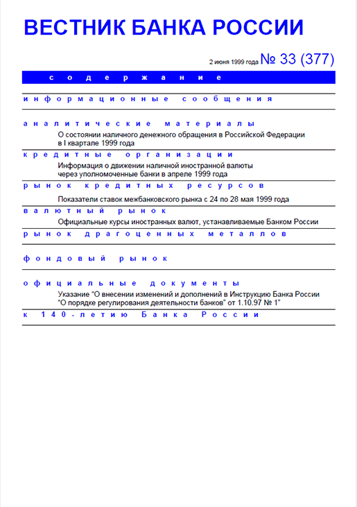 Вестник Банка России, 1999, N 33