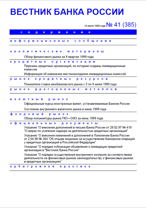 Вестник Банка России, 1999, N 41